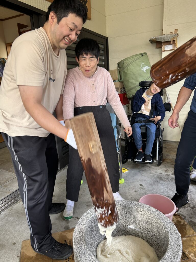 今年は悪天の中、かしわ学級さんが大勢でおもちつきに参加してくれました!